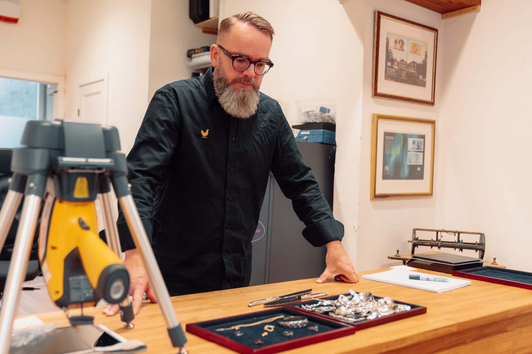 For å effektivisere tidsbruken, har Torbjørn en røntgenmaskin på disken som raskt kan fortelle sammensetningen av metaller i et smykke eller en gjenstand.