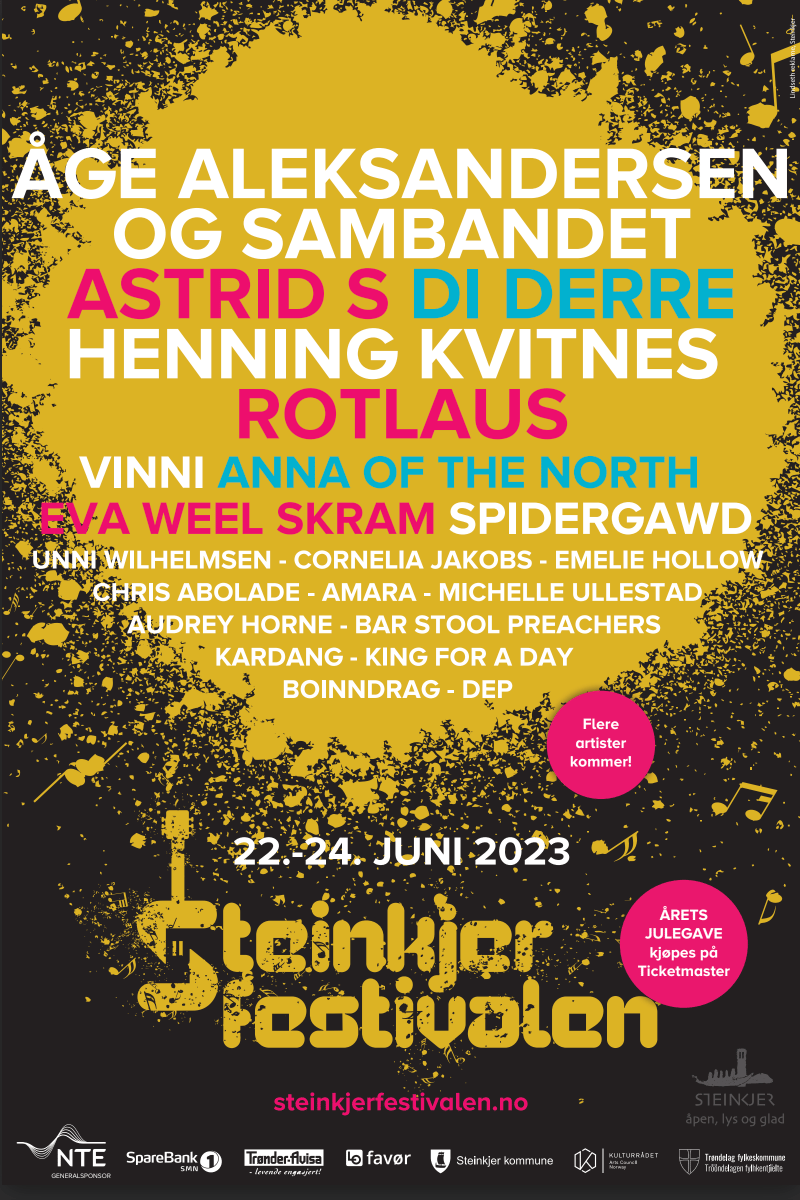 PS! Mer om festivalen og artistenes syn på Steinkjer kan du lese i boka "Steinkjerfestivalen 20 år" som er i salg f.o.m. uke 23.
