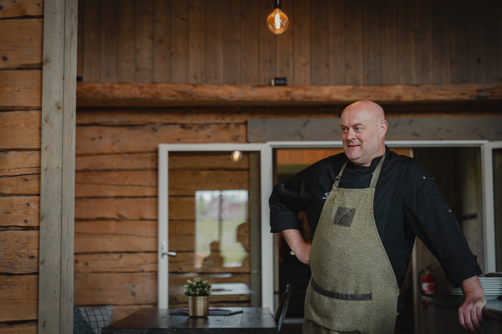 – Jeg jakter selv og har egen elgkvote på eiendommen. Det gjør at jeg kan gå ut og skyte elgen, ta hånd om kjøttet selv, i tillegg til å slakte, partere og tilbedre det. I realiteten kan vi servere elg som gikk utenfor stuedøra. Nærmere kommer du ikke, smiler Gunnar.