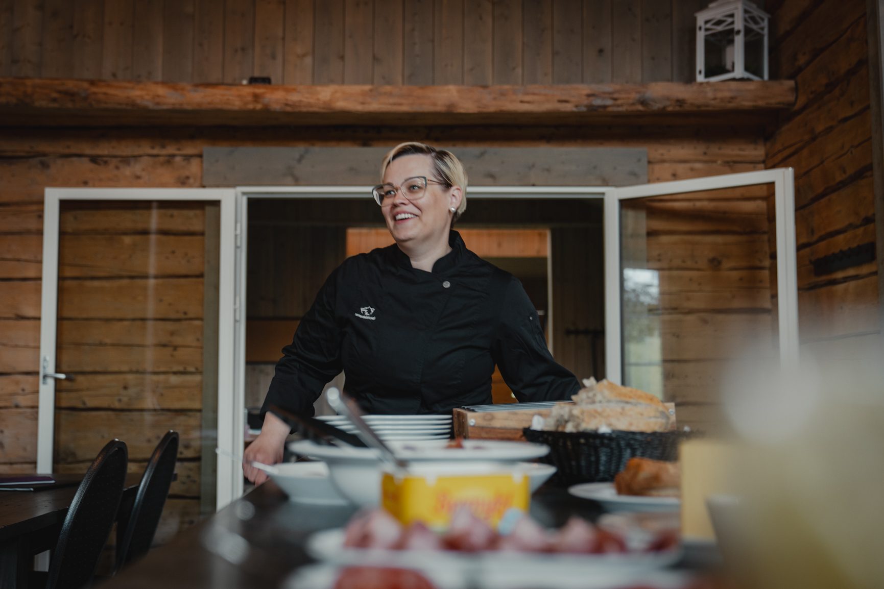 SERVERING: Ingunn Devik disker gjerne opp med hjemmebakt brød og pålegg fra Lierne. Hva med varmrøkt røye fra Blåfjell, en reindsyrbiff fra Li-vilt eller andre kjøttprodukter tilberedt på Ytterdalstunet?