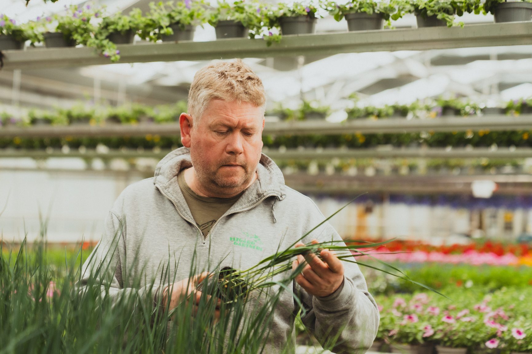 MATVEKSTER: I gartneriet finner du alskens urteplanter og grønnsaksplanter. – Det er få ting som smaker bedre enn egen gressløk og purreløk, sier Bjørn Ystgård.